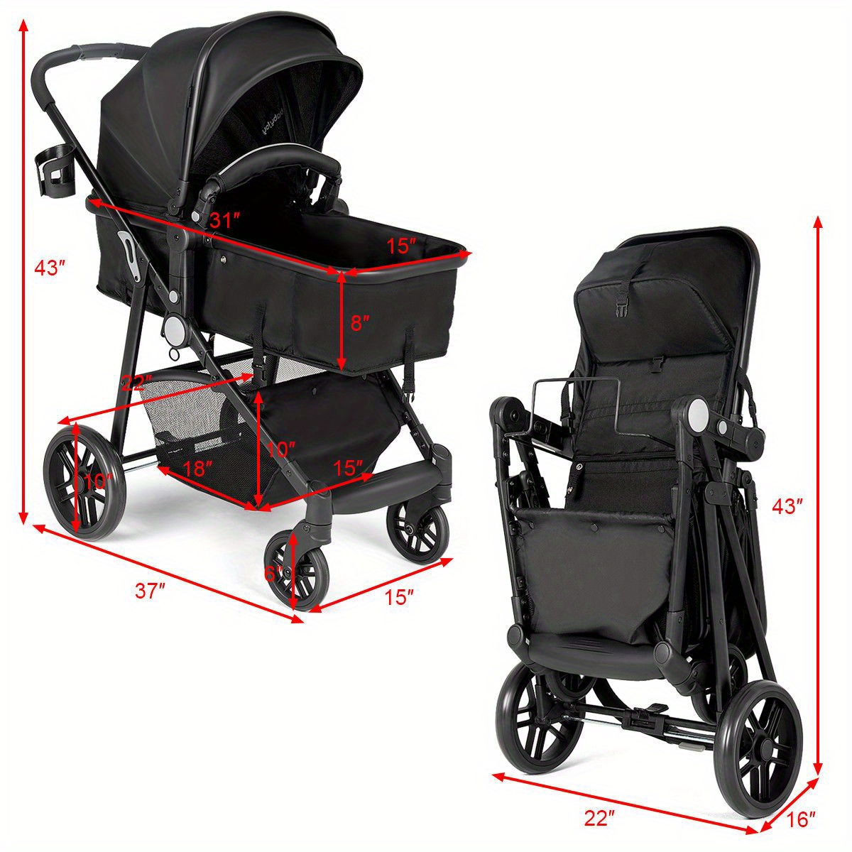 Christmas Multigot 2 in 1 Foldable Baby Stroller Kids Travel Newborn Infant Buggy Pushchair Black